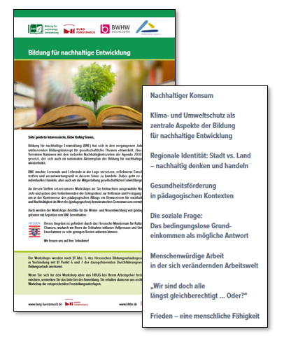 Des Weiteren möchten wir darauf hinweisen, dass Sie die geförderte Workshop-Reihe „Bildung für nachhaltige Entwicklung“ weiterhin über diese Homepage unter Seminare buchen können.